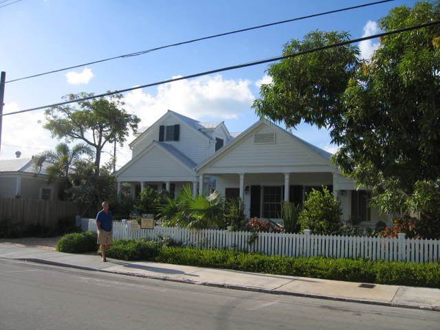 "An exceptional property awaits you in Key West. Come experience an harmonious blend of historic craftsmanship and modern conveniences. Downstairs is a the master bedroom with luxurious en suite bath and two private covered porches. The gourmet kitchen is highly functional and designed for entertaining with style. Vaulted ceilings and an open floor plan of the living and dining areas are impressive. French doors lead to a covered porch with enclosed laundry room and views of tropical gardens and swimming pool. Upstairs are two beautiful bedrooms with a stylish shared bath. The grounds are lush, with mature Frangipani and champion Mango Trees. A bricked driveway provides an elegant entrance to the house, and parking for two cars."I researched the historic Sanborn Fire Maps and could not locate this house on any of the four old maps available and could not find any indication that this house existed prior to 1912, but that does not mean it was not in existence but only that it was not cited on a map. I did, however, find a photo taken in 1965 that shows us what the house looked like before renovation. Then I found a photo I took right after the renovations were completed. The lower photos show the clean lines and classic look of both the old house and the new addition. You'll probably amazed at how large and how quickly the landscaping has grown compared to the current photos in today's blog.