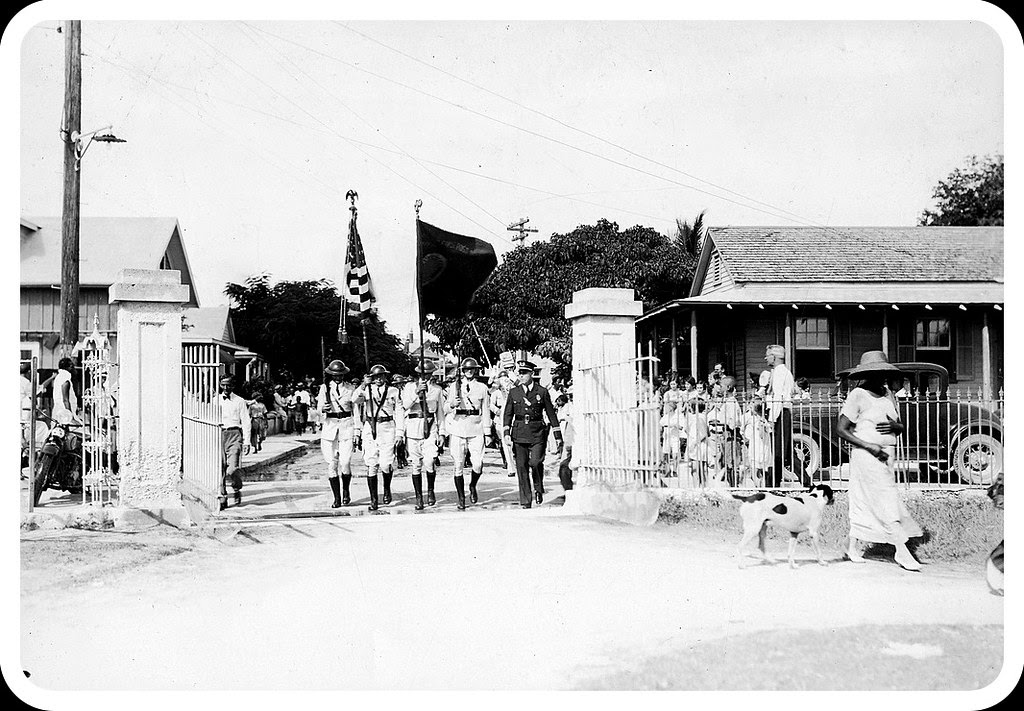 I can report that locals have a long lived "love affair" with the cemetery.  I found the two photos below that portray the events of a funeral in 1934. If you look carefully between the two monument pillars on either side of the gate and look up to the house at the top of Windsor Lane you can barely detect 630 Elizabeth Street about which I have recently written.  (You can click any photo for a larger version.) The ceremony of funeral parade through the streets of Key West continues today.  I have not seen one in a couple of years.  Let me tell you that it is mighty powerful stuff. The last one passed by old city hall on Angela Street. A former colleague led the process swinging a scepter as the mourners paraded up Angela Street which then becomes Windsor Lane and that eventually leads to the final resting place in the Key West Cemetery.  A small choral group passed by singing. They were followed by a brass band that had had me clapping and crying at the same moment. It was an awesome experience to witness the passing of someone whose name I did not know but who had so many loyal friends to take him to meet the Lord.