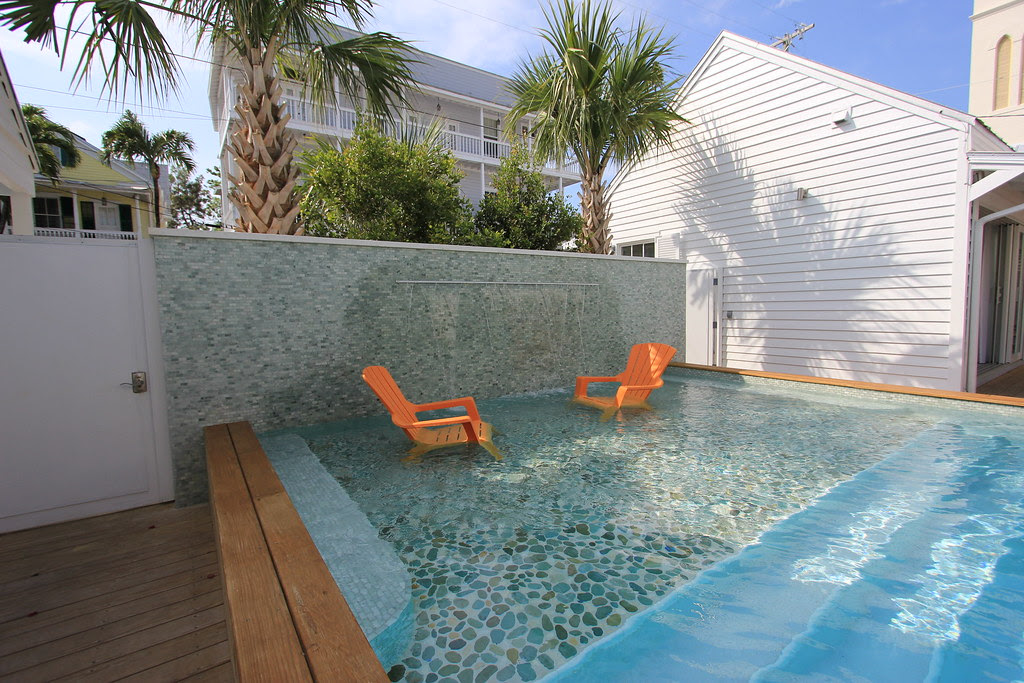 The grand old Conch house across the street at 522 Grinnell Street seems to have stopped for a time. The owner started an ambitious remodel of one of the largest old homes in Key West. This house was built to grand proportions with tall ceilings, a fireplace, formal dining room, and bay windows on either side of the main floor. The owner added a new rear two story porch which may eventually overlook a pool. The backyard has room for a pool, but so far there is no evidence a pool is intended.
